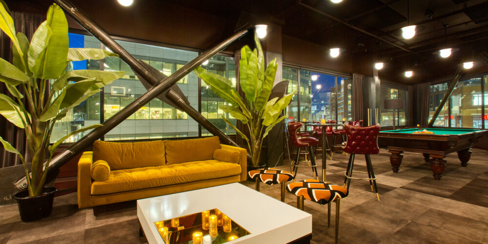 With a private, VIP entrance, your guests are greeted at the marble bar with their favorite cocktail or signature drink. From there, the path leads to a vintage-style lounge with a custom pool table, and a mezzanine space that boasts floor-to-ceiling windows with peekaboo views of Lake Union.